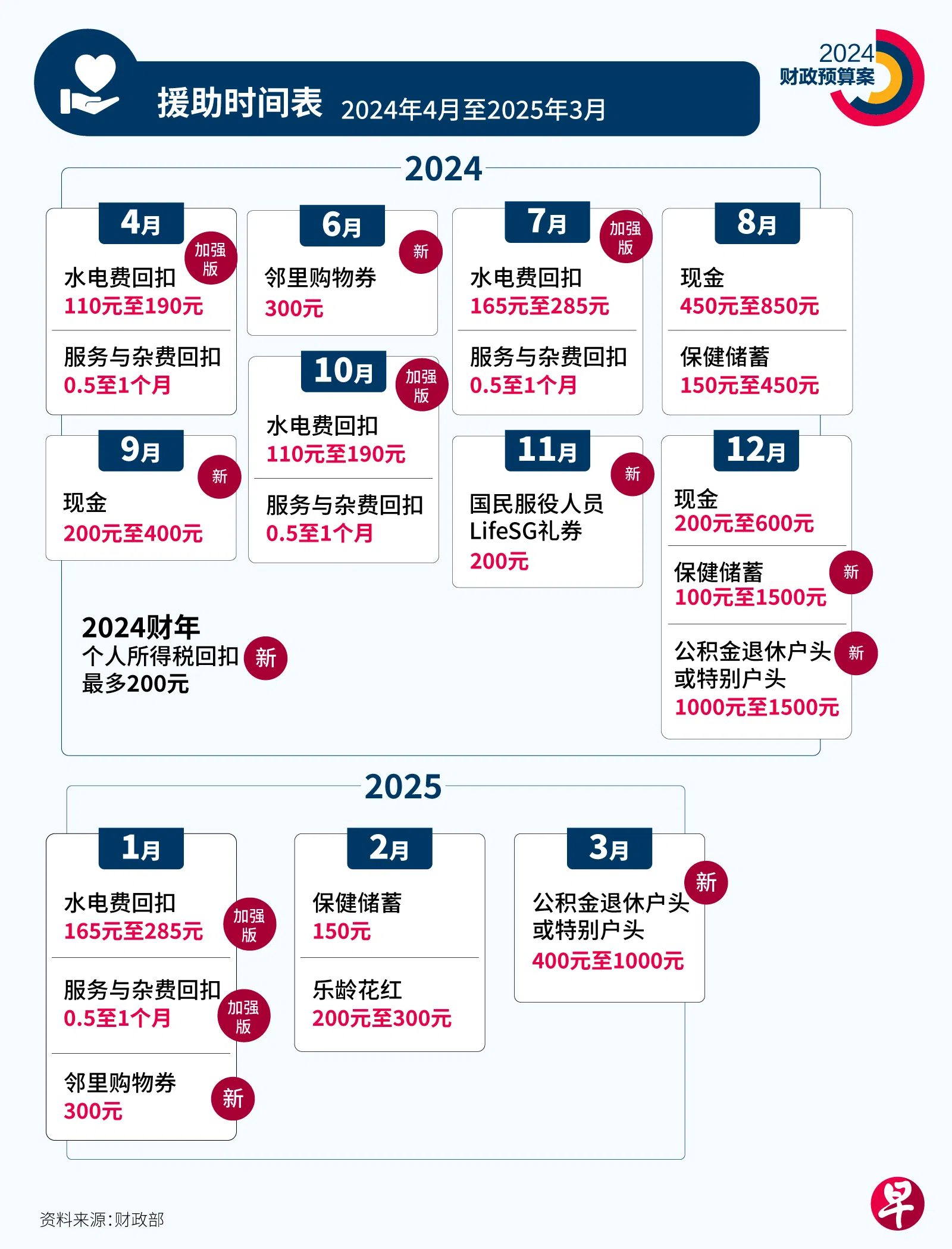 2024年财政预算案的主题为“齐心协力,共创未来”(Building Our Shared Future Together),副总理兼财政部长黄循财星期五(2月16日)在国会发表预算案声明时,宣布一系列措施,不仅帮助人们减轻生活费上涨的压力,也为本地员工、家庭、年长者和雇主,解决就业、育儿、退休和经商挑战。