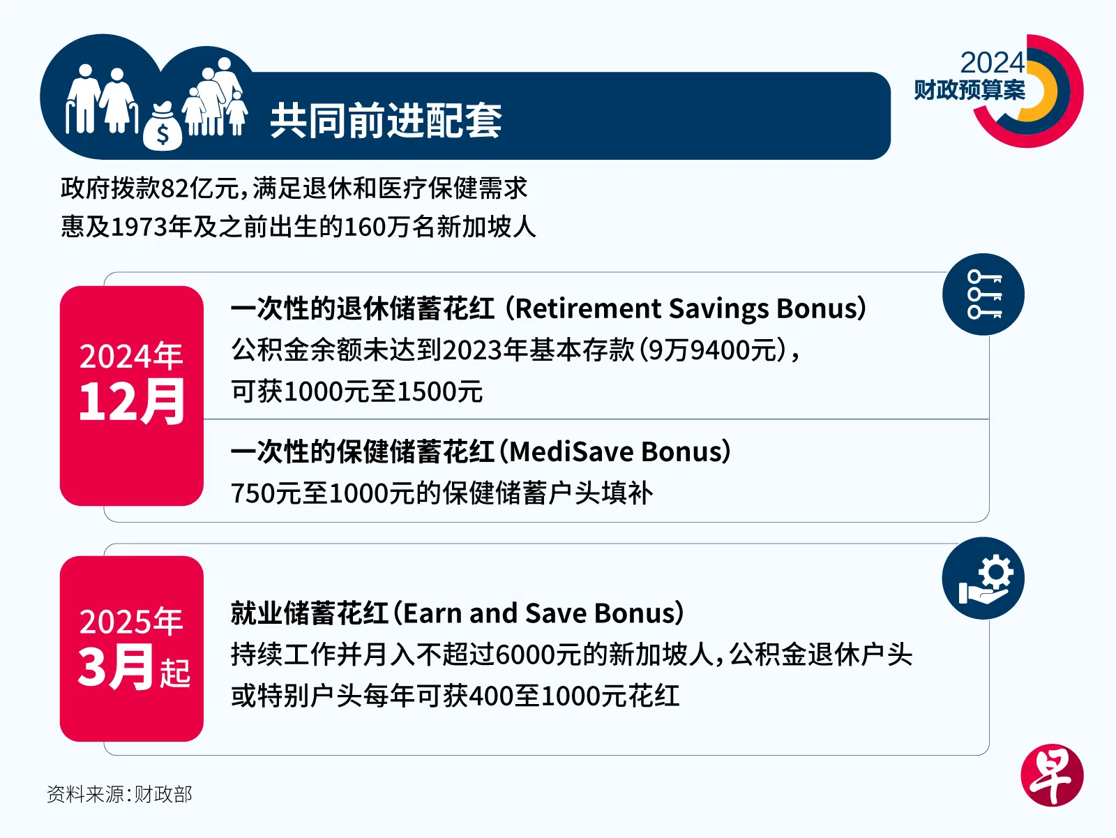 为进一步缓解生活费压力,政府将在2024估税年提供50%的个人所得税回扣,顶限为200元,这主要惠及中低收入工人,回扣总金额为3亿5000万元。政府也从2025估税年开始,将符合税务回扣条件的家属和看护者年收入顶限,从目前的4000元增至8000元。