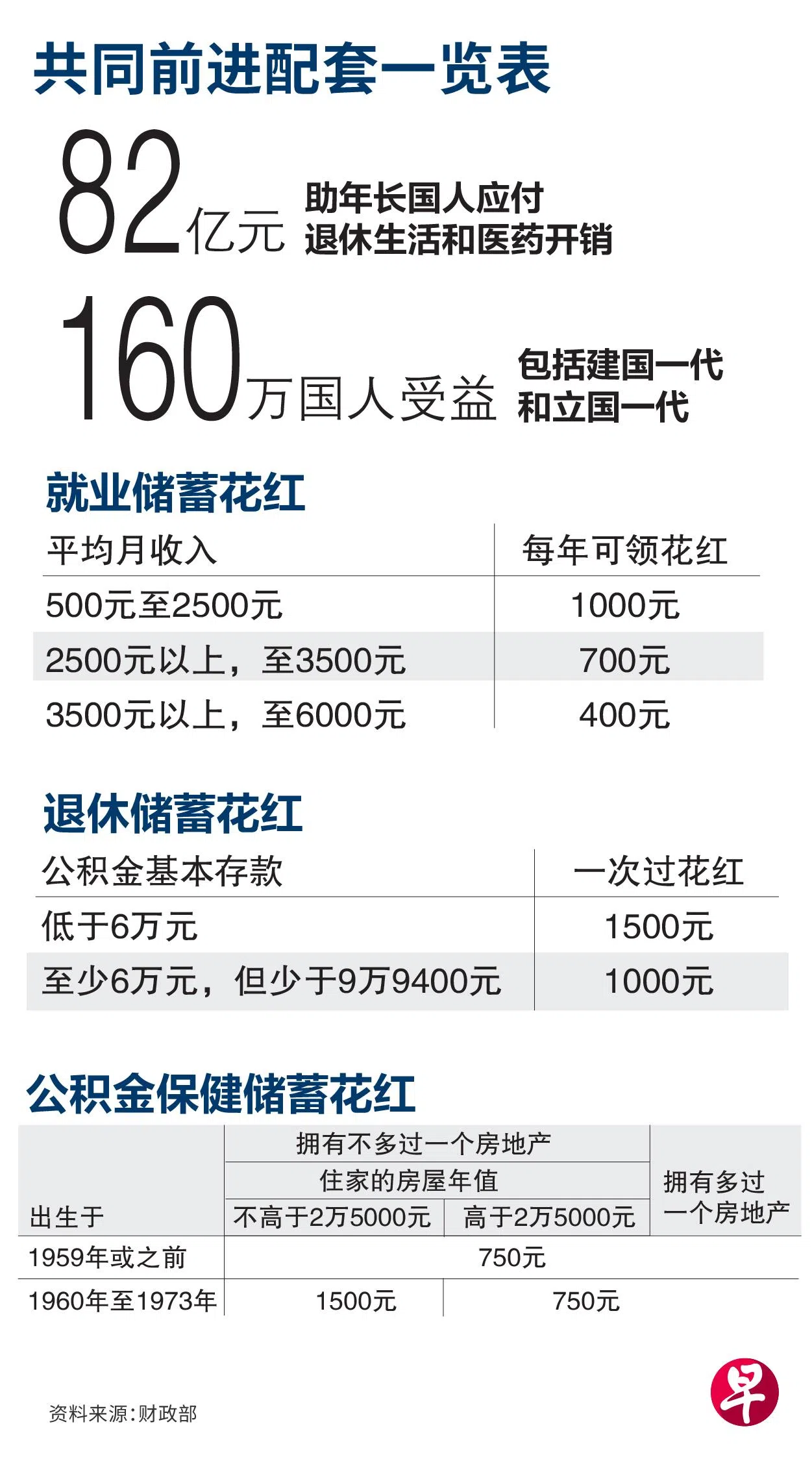 政府推出总值82亿元的共同前进配套,鼓励壮龄国人就业,并为他们提供退休花红及保健储蓄花红,为退休后的生活做好准备。