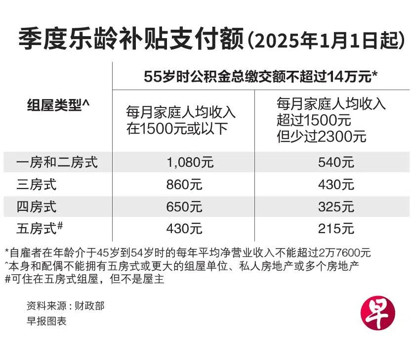 另一方面,从2025年起,旨在帮助公积金退休存款不足的年长者的退休户头配对填补计划(Matched Retirement Savings Scheme),受惠者只须满55岁即可,不再受70岁的年龄顶限所限。