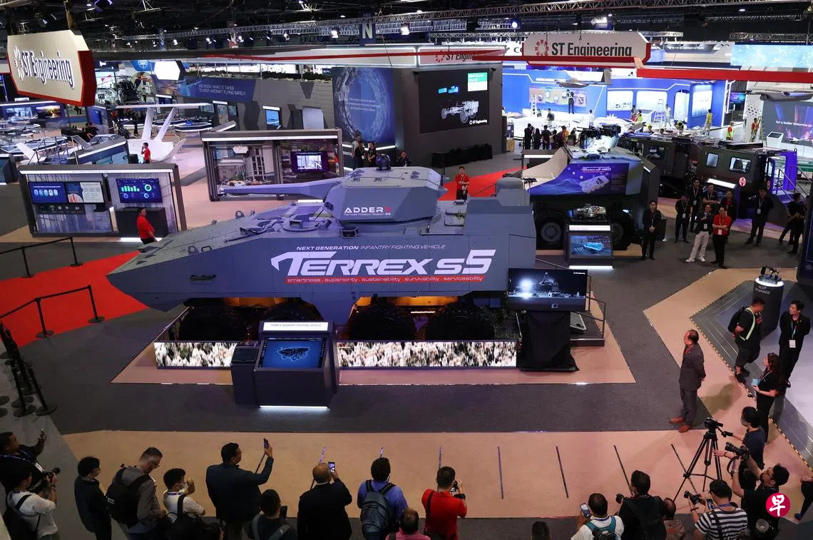 配合来临的新加坡航空展,新科工程(ST Engineering)星期天(2月18日)在樟宜展览中心举行记者会,正式发布泰莱斯s5步兵战车(Terrex s5 Infantry Fighting Vehicle)。