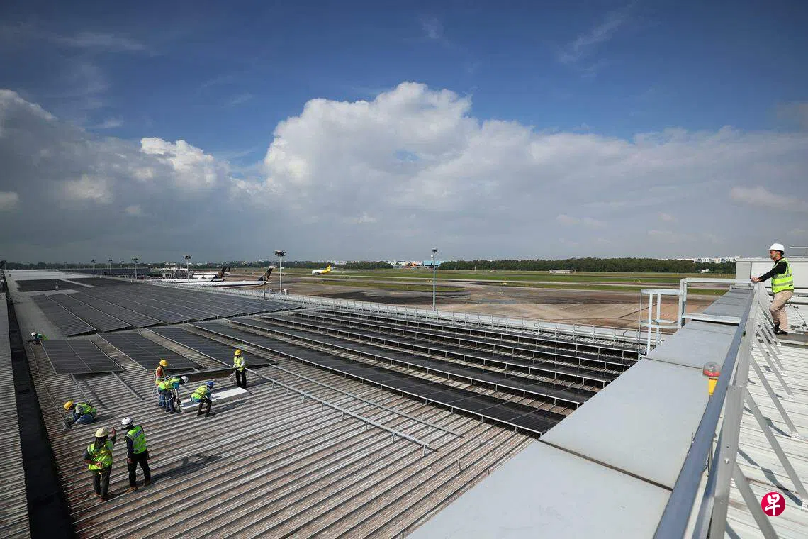截至去年底,樟宜机场的太阳能装机容量超过20兆峰瓦(MWp),占2019年用电量的近4%。接下来,樟宜机场搭客大厦、副楼、货运建筑顶层及草坪,将陆续安装更多太阳能板,提供多6%的电力。实里达机场也将安装太阳能板。