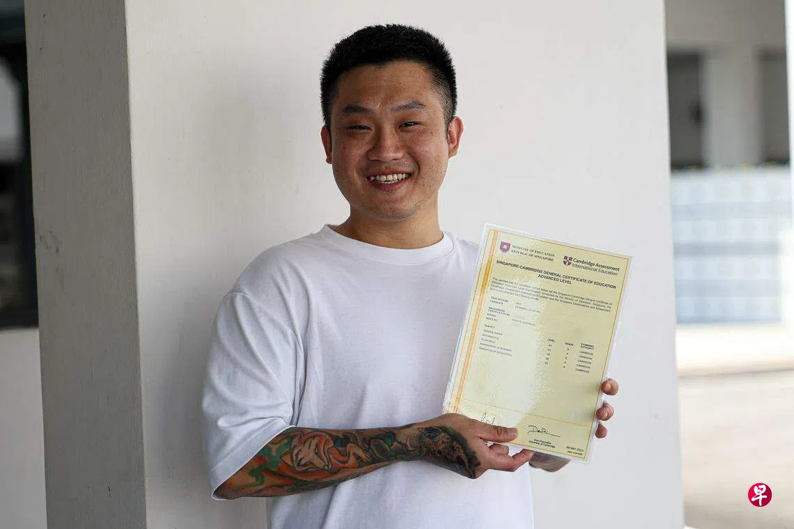 罗智凯在狱中努力学习,在去年仍服刑时完成了A水准考试,去年底出狱。他星期五(2月23日)A水准放榜后,以释囚的身份来到监狱领取成绩证书。
