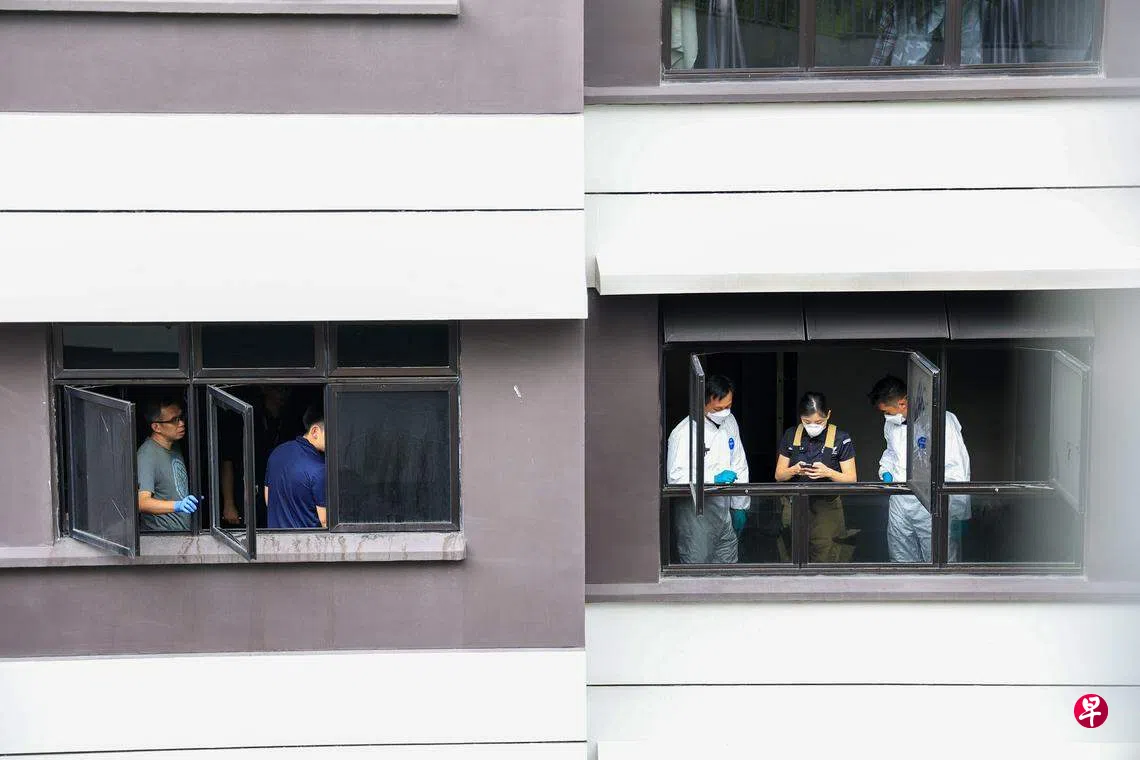 《联合早报》记者赶到现场后,看见多名警员和民防部队人员正在失火单位内进行调查。