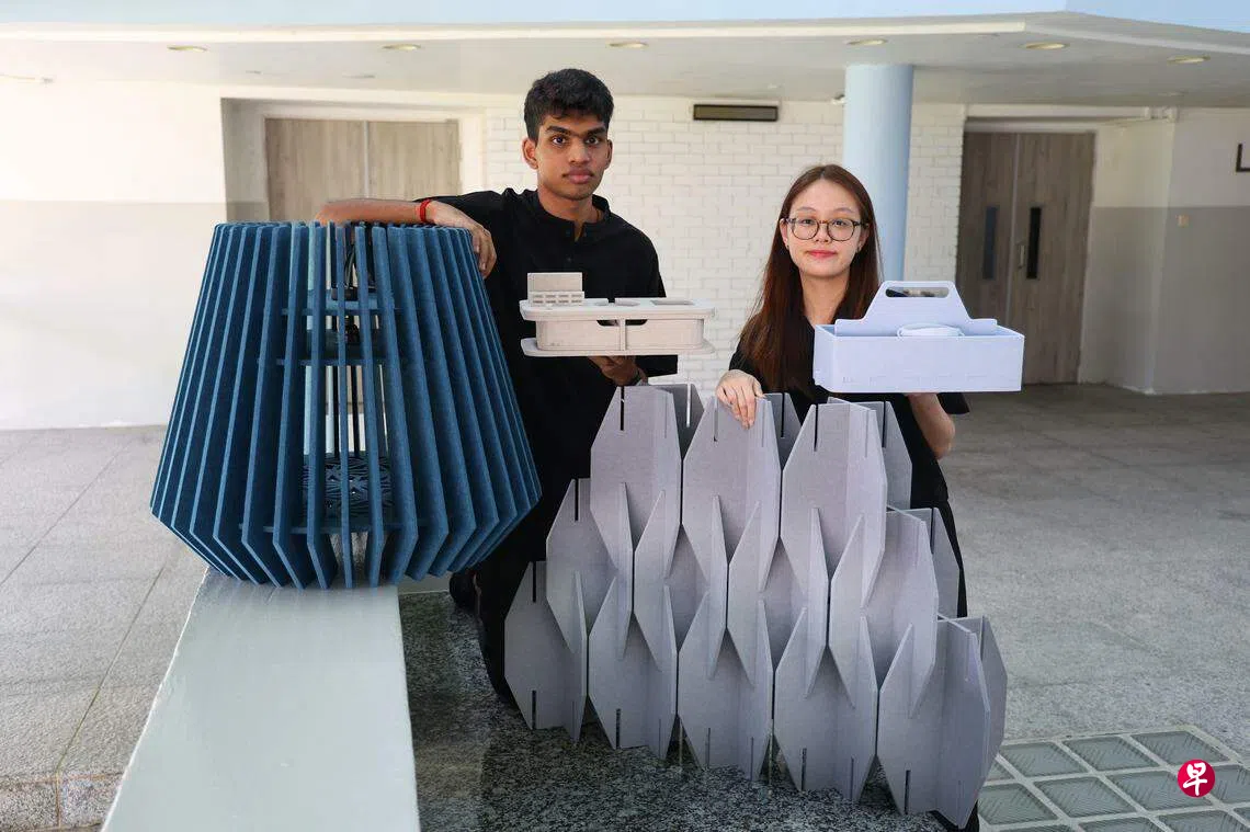 淡马锡理工三年级学生尤咖(Yugaprasad,22岁)和同学朱欣仪(22岁),去年在Pepperwall实习超过四个月。期间,两人把废料成功设计成抽屉、桌灯等产品。Pepperwall未来打算设立家居用品部门,售卖这类“再造”产品,开拓市场。