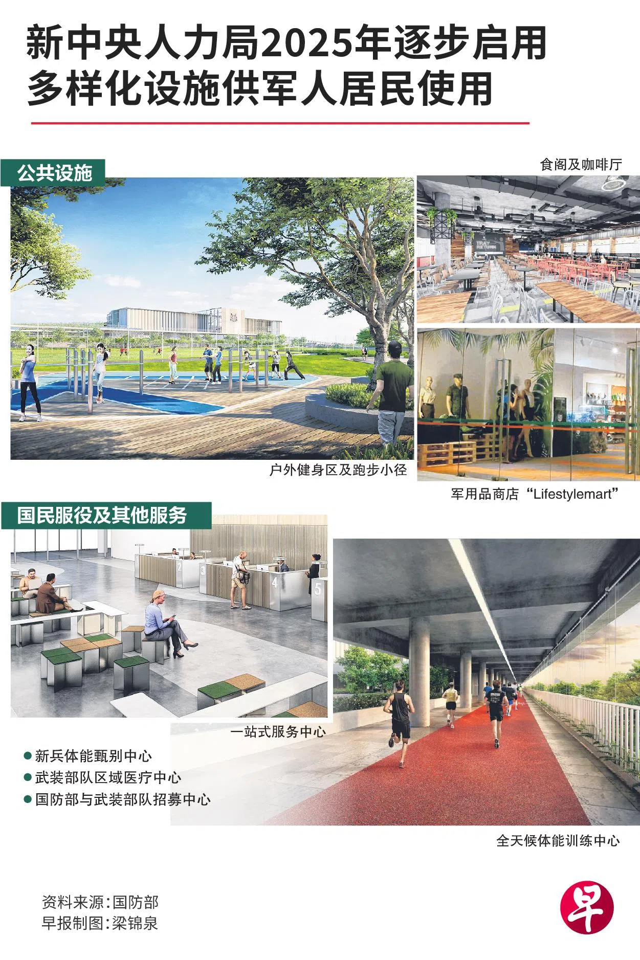 位于凯秀地铁站对面的新中央人力局,2025年逐步启用。届时,战备军人可在全天候体能训练中心,完成个人体能测验,不必担心天气。武吉班让一带的居民也可到那里的食阁、咖啡厅消费,或使用户外健身区等公共设施。