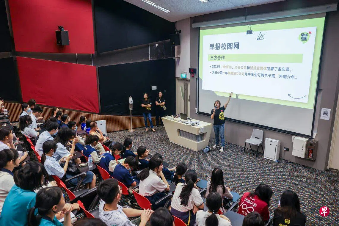 工作坊的开场由早报校园的记者打头阵,为学生们演示如何利用早报校园网的报道作为阅读素材,更深入地学习华文。