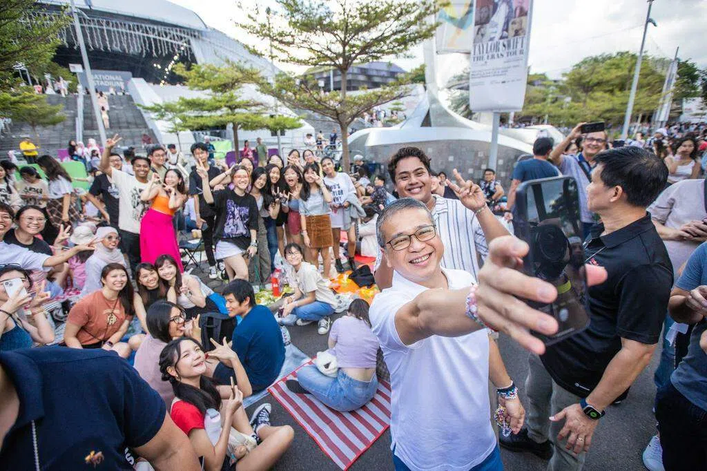 晚上开场前几个小时,泰勒丝(Taylor Swift)的大批忠实粉丝早已提前抵达新加坡体育城排队购买周边产品、交换友谊手链、拍照打卡等。许多买不到演唱会门票的粉丝也自带垫子和折叠凳,在场外一同振臂狂欢。