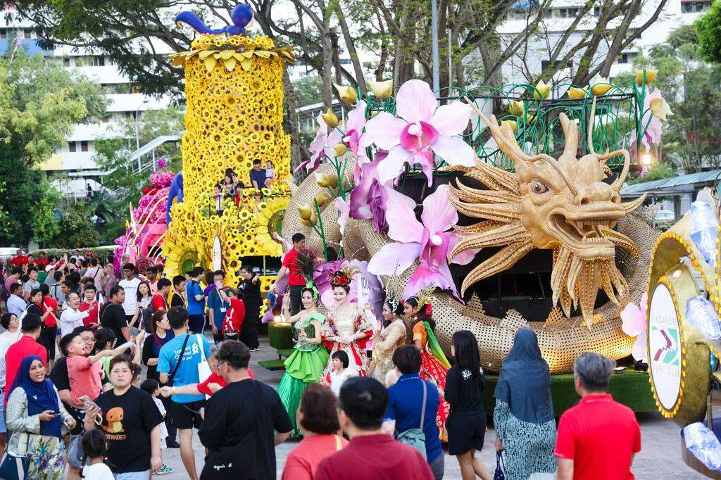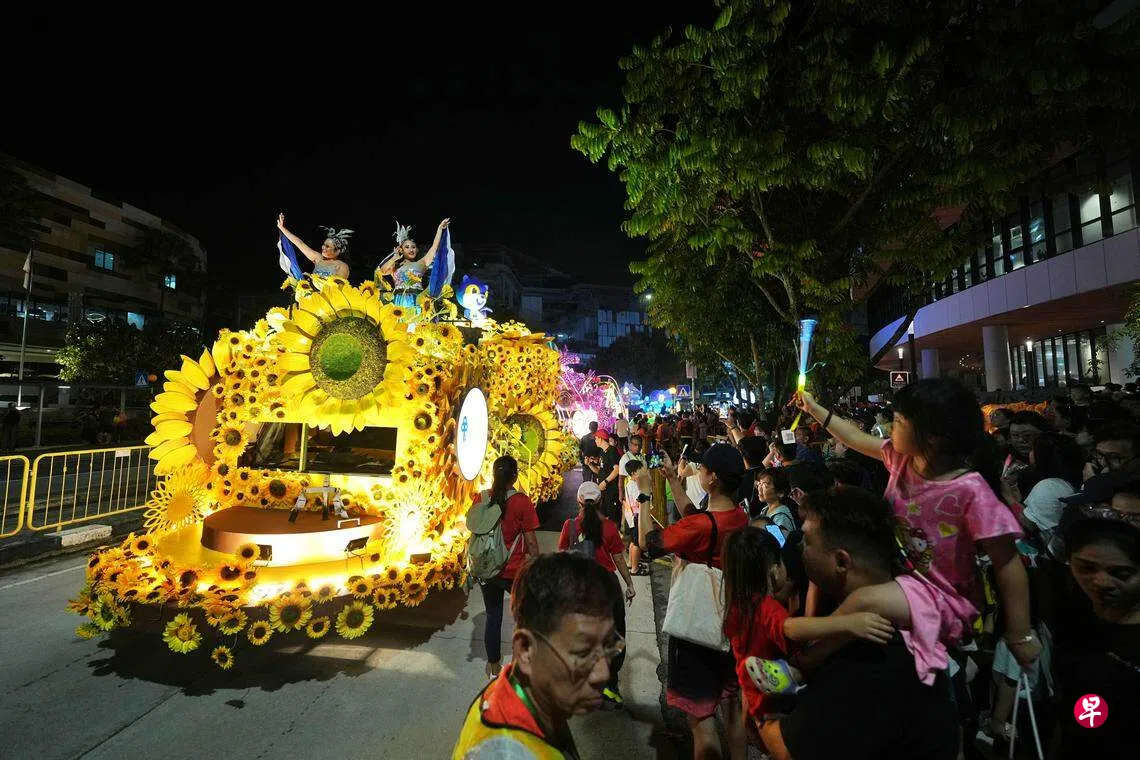 傍晚6时许,11辆大型花车从白沙出发,徐徐穿过白沙组屋区,公路两旁站满了携家同行的居民,每当花车开过时,大家难掩兴奋之情。三个多小时后,花车驶入榜鹅,与早已等候多时的居民见面。据主办方估计,最后第二场的“妆艺在邻里”吸引至少1万个居民到场观看和参加嘉年华会。