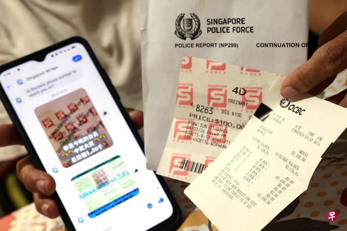 虽然感到不悦,但她指为了赢钱,就用2000元买了“三奖”号码,并在隔天转账给对方指定的PayNow账户。