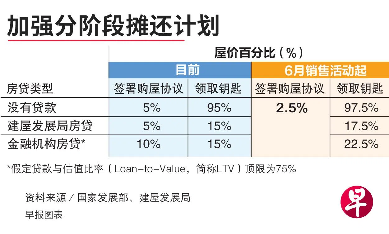 另外,申购新组屋的首次购屋家庭,只要有一名屋主不超过30岁,目前也能通过分阶段摊还计划(Staggered Downpayment Scheme),分两次支付首付款。他们签署购屋协议时只须付屋价的5%或10%,取决于他们申请的是建屋局或银行的房贷,剩余首付款在领取钥匙时付清。