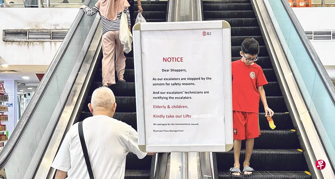 盛港鲤河大厦(Rivervale Plaza)两个电动扶梯同时坏了约一周,两台电梯也坏了一台,二楼商家申诉生意减半。