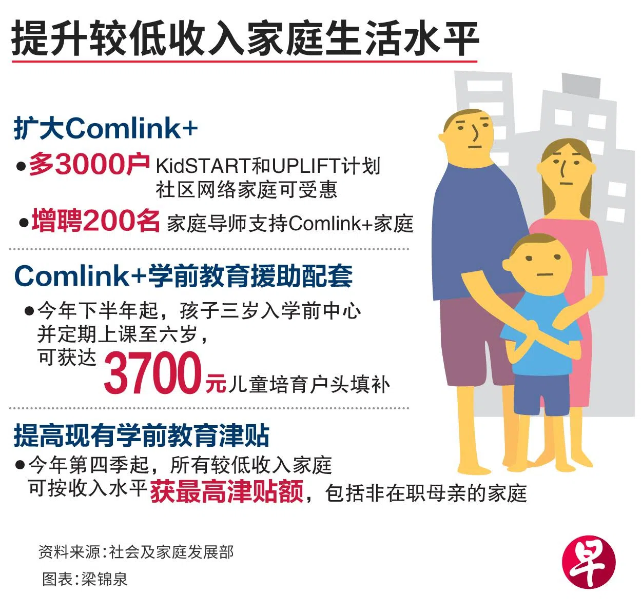 2021年起正式推展的ComLink计划,去年11月提升为ComLink+。接下来三年,政府将逐步试行涵盖就业、存钱购屋、减轻债务,以及学前教育的四大援助配套。