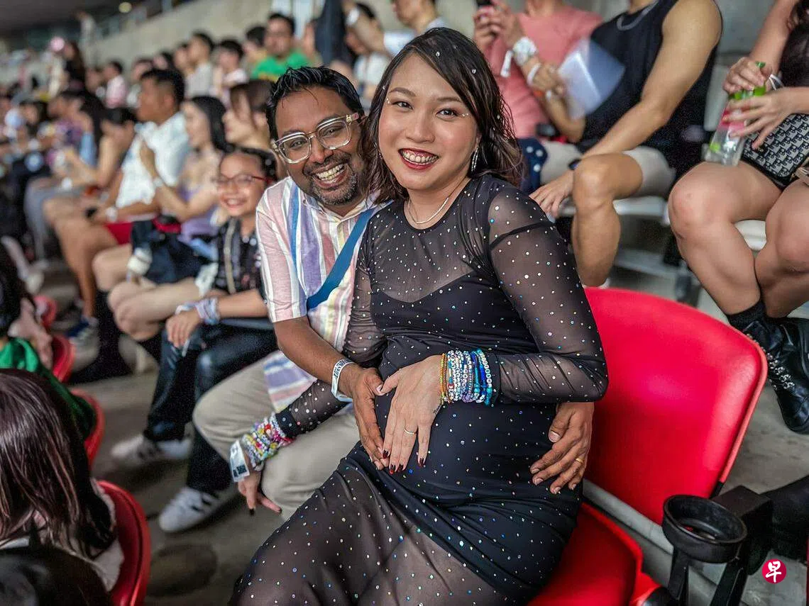 挺着八个月孕肚的铁粉从马来西亚来到新加坡看泰勒丝演唱会,采用体育城的贴心特别通道,避开长长的安检人龙。