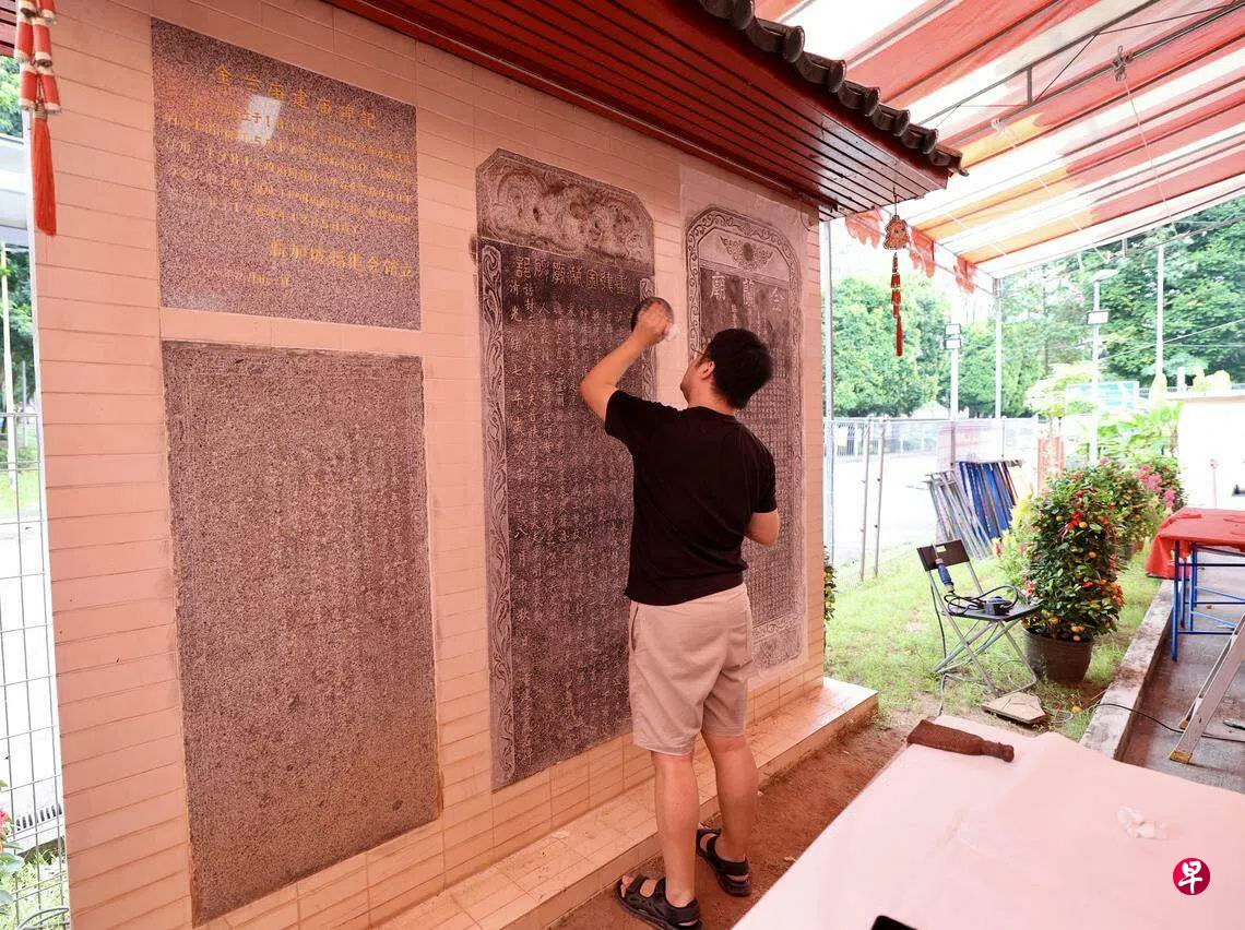 落户中峇鲁金殿路近40年的金兰庙将从3月12日起暂时关闭一年,展开修复翻新工程。国大的研究员赶在工程展开前,对庙里五块相信有约200年历史的石碑进行拓片制作。