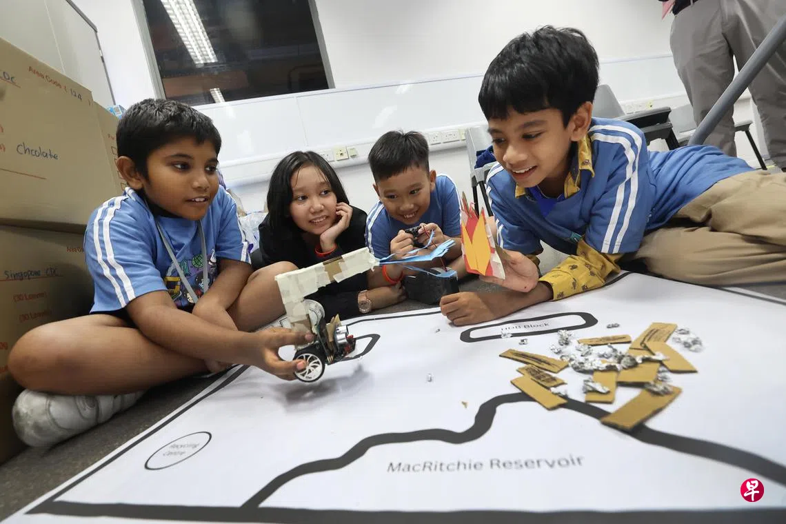 安娜贝拉代表团队受访时说:“我们的机器人可以模拟从蓄水池取水,再到着火的组屋灭火的情况。与此同时,我们知道新加坡的自然资源不多,因此我的组员也想到了要让机器人增加一个能够运送木头的功能,模拟直达回收厂的场景。”