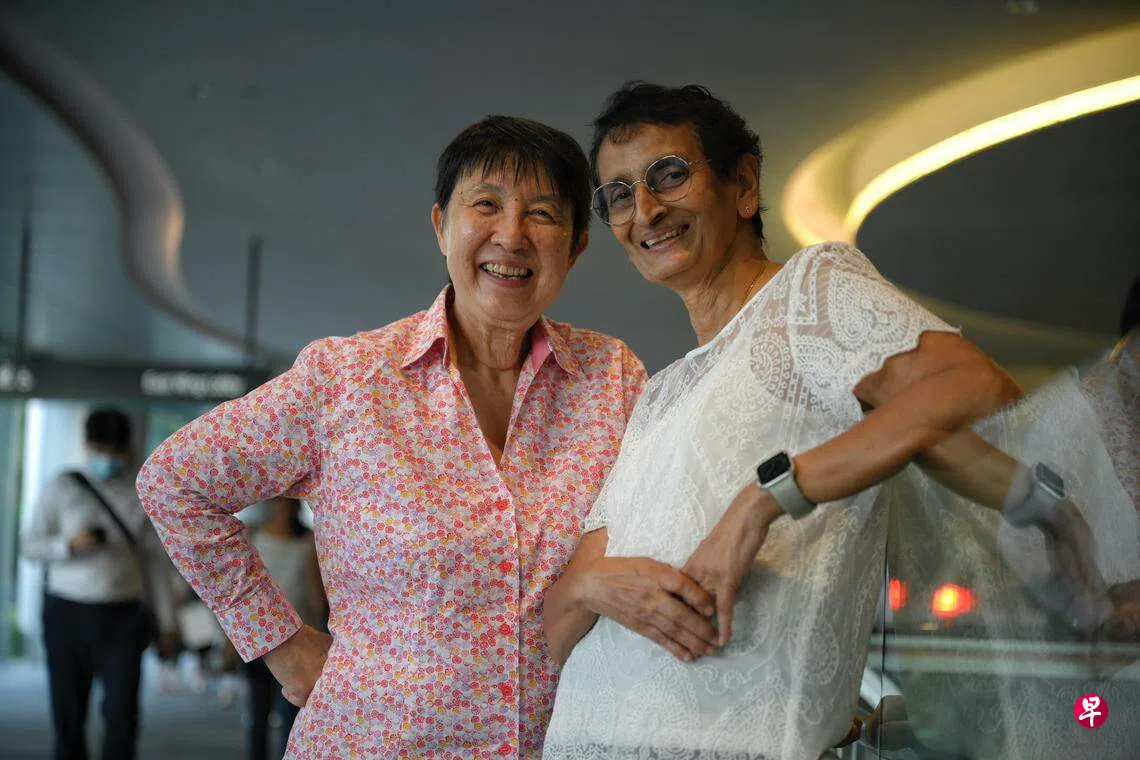 专为癌症及重病儿童开设一所日间护理中心的罗妮塔(Ronita Paul,72岁)和李相爱(66岁),在星期三(3月13日)下午,一同从尚达曼总统手中接过《海峡时报》新加坡年度人物奖的奖杯。罗妮塔在发表感言时,迫不及待地想把这个消息告诉中心的孩子们。