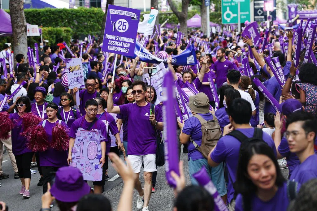 交通部长兼财政部第二部长徐芳达与“紫色行动”筹委会顾问、中区市长潘丽萍星期四(3月14日)在勿拉士峇沙(Bras Basah)地铁站月台为“紫色行动(Purple Parade)之21张面孔”海报揭幕,并在地铁上与到场的17名残障人士一起交谈和唱歌互动。