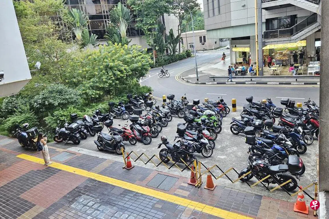 公众申诉,乌节路卡佩芝大厦门口的一片小空地,犹如“免费停车场”,停满了电单车,经过时还得小心翼翼。