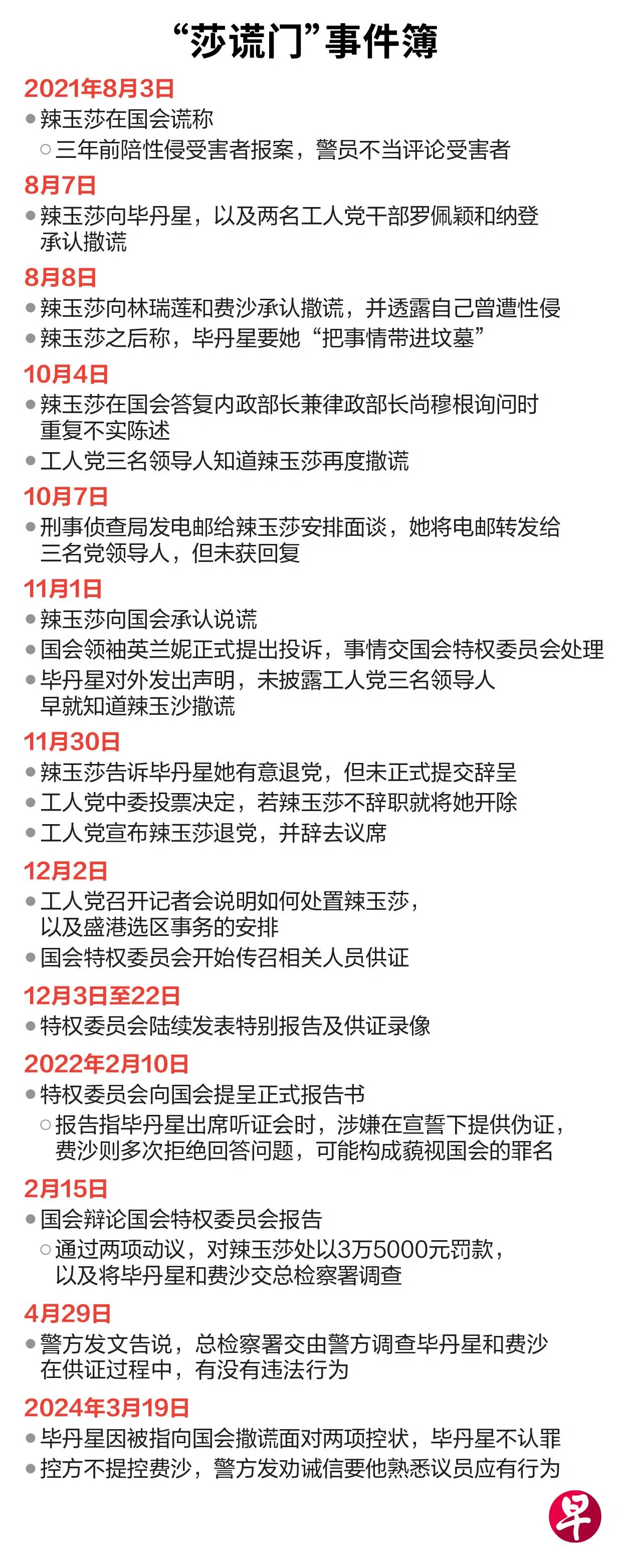 盛港集选区前议员辣玉莎2021年8月至10月,三度在国会撒谎,事件交由国会特权委员会处理。特权委员会2021年12月针对辣玉莎国会说谎一事,展开总计31小时的听证会。