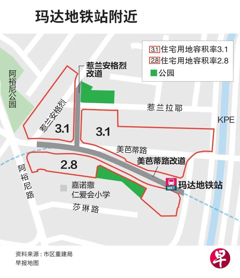市区重建局2月底公布对2019年发展总蓝图的修订建议。滨海市区线玛达(Mattar)站旁三幅住宅用地,边界和总容积率有所调整,附近美芭蒂路(Merpati Road)和惹兰安格烈(Jalan Anggerek)也改道,为未来住宅区做准备。当局说,这是为了让更多居民可享受到地段靠近生活设施和交通枢纽带来的便利。