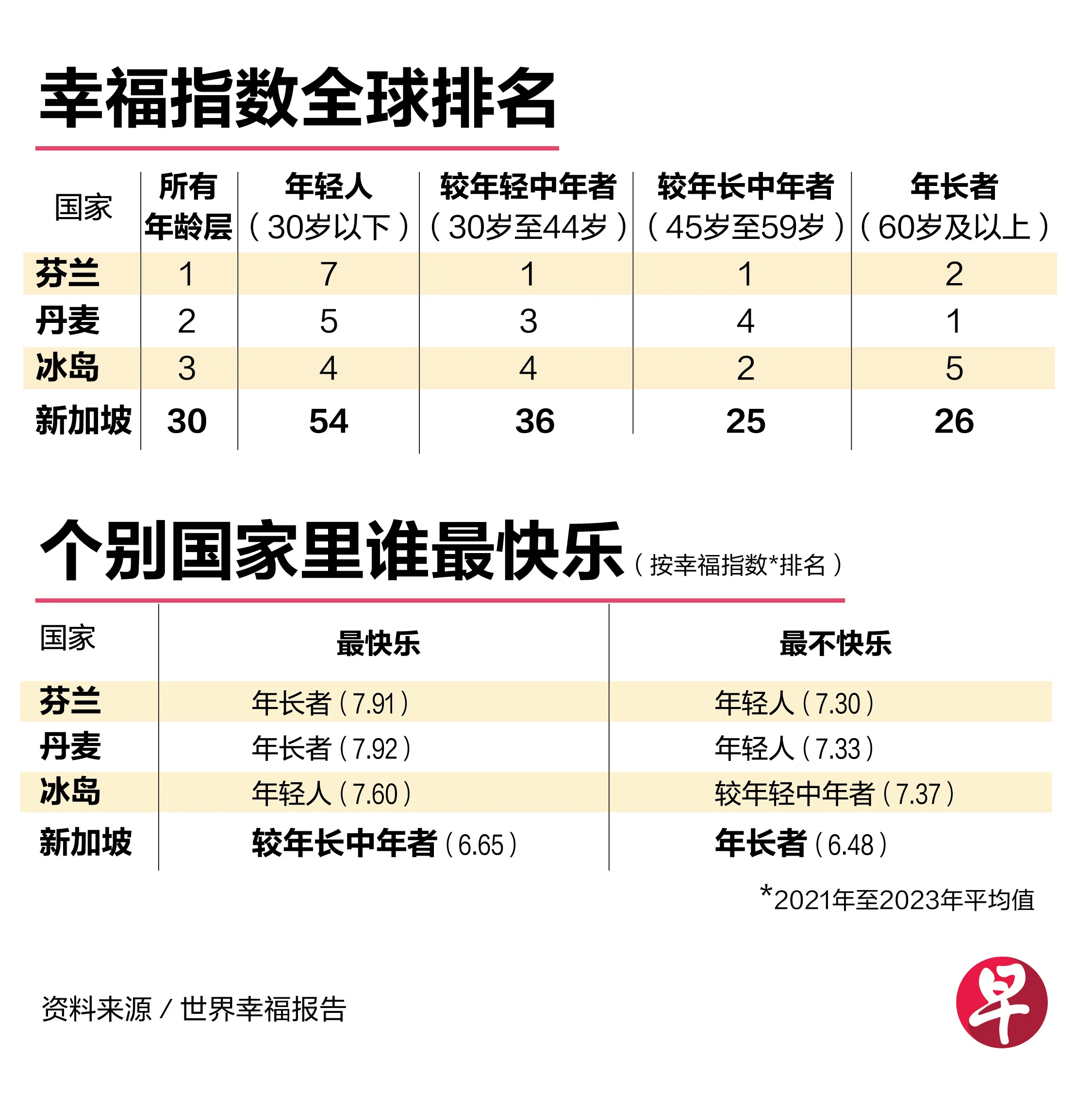 《世界幸福报告》出炉,新加坡在143个国家和地区中排第30名,虽比去年下滑五个名次,但仍连续第二年成为亚洲最幸福的国家。
