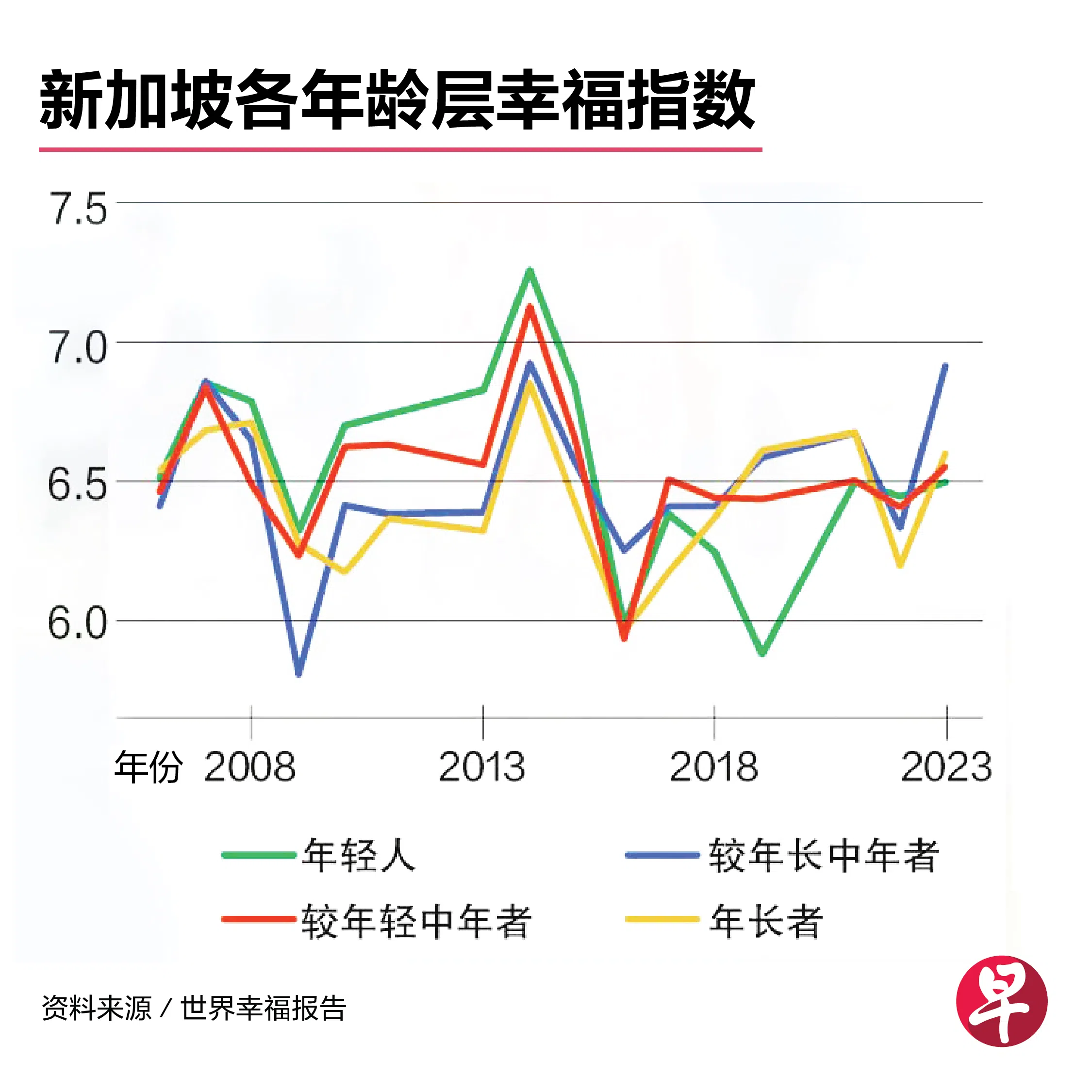 王顺说,在很多国家,幸福感都随年龄增长呈现U型,即中年阶段处于幸福感的底部,年轻人和年长者略好。但究竟是年轻人还是年长者感到较幸福,各国不同。比如,社保福利较差的韩国,年长者幸福感在所有年龄层中最低,而新加坡、日本、中国相反,老年人幸福感较高,年轻人生活工作压力较大,幸福感较低。