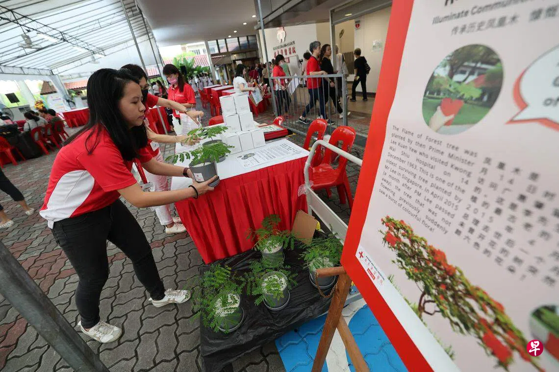 广惠肇留医院总裁莫应章医生说,这棵凤凰木历史悠久,是建国总理李光耀于1963年种下的,在医院矗立60多年,也是全国树龄最老的纪念树之一。