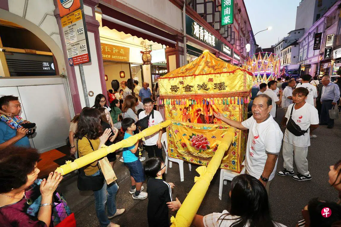 在家供奉了王母娘娘16年的阿秋甜品店经理陈国彬(54岁)告诉记者,这场王母娘娘感恩日庆祝仪式为期三天,游行仪式是第二天进行,最后一天会把王母娘娘送回位于巴耶利峇的修本堂。