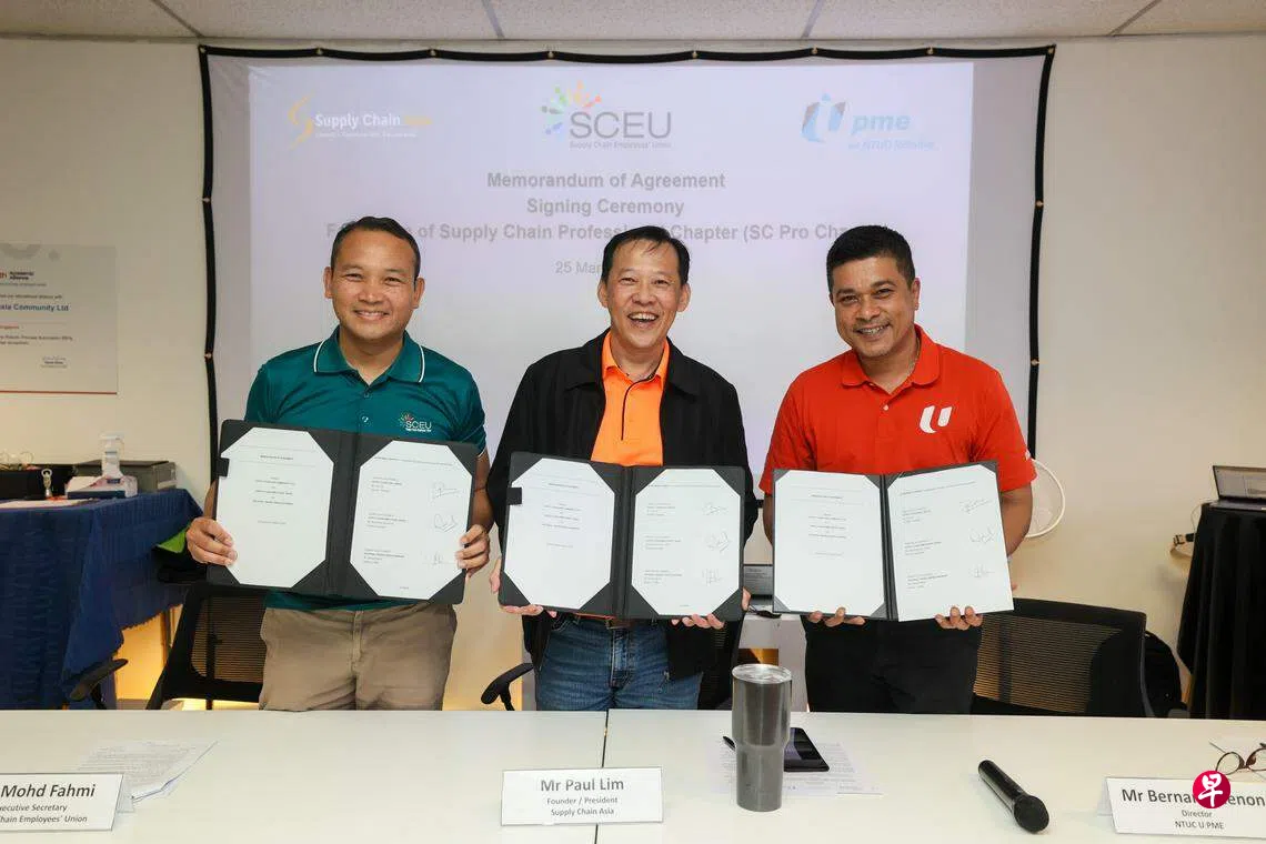 非盈利团体供应链亚洲社区(Supply Chain Asia,简称SCA)、供应链雇员联合会(Supply Chain Employees’ Union,简称SCEU)及全国职工总会U-PME中心星期一(3月25日)签署为期三年的协议备忘录,正式推出供应链专业人员分会(Supply Chain Professional Chapter)。