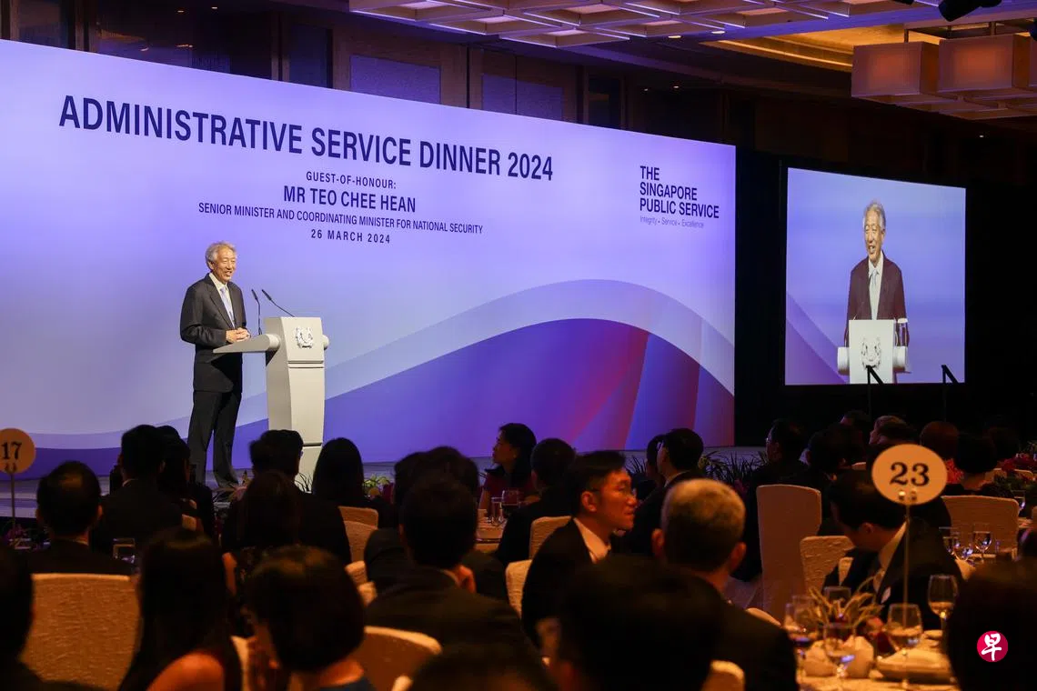 公务员首长叶成昌在晚宴上致辞时,也敦促公共服务领导人向政治领导人,为新加坡的福祉提供诚实的意见和建议。他说,我国下来将进行政治领导层的更替。“继续全力支持政治领导层及他们对新加坡的优先事项,是公共服务的责任,也是行政服务的责任。这就是我们的制度运作方式。这也是我们必须继续努力使政府体制取得成功,造福新加坡和新加坡人民的方式。”