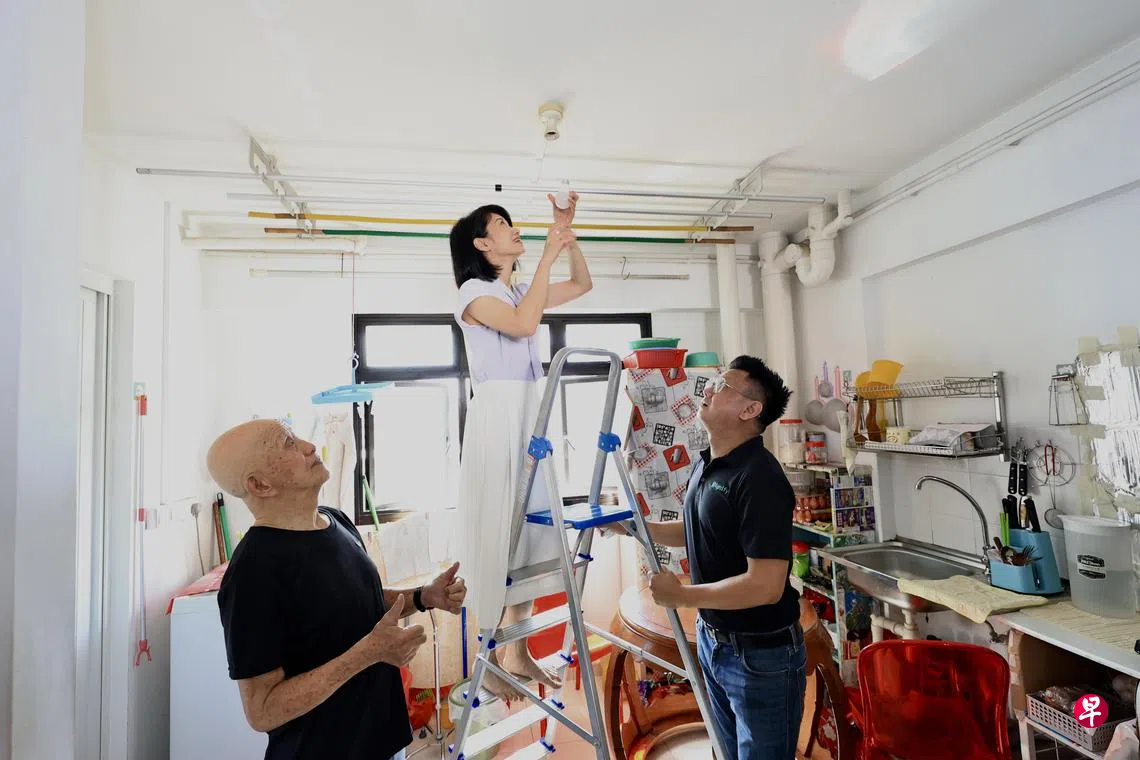“这座组屋约有60%的居民是年长者,相信新的LED灯泡能耐比较久,这样一来年长者就无须爬到高处自行换灯泡。”