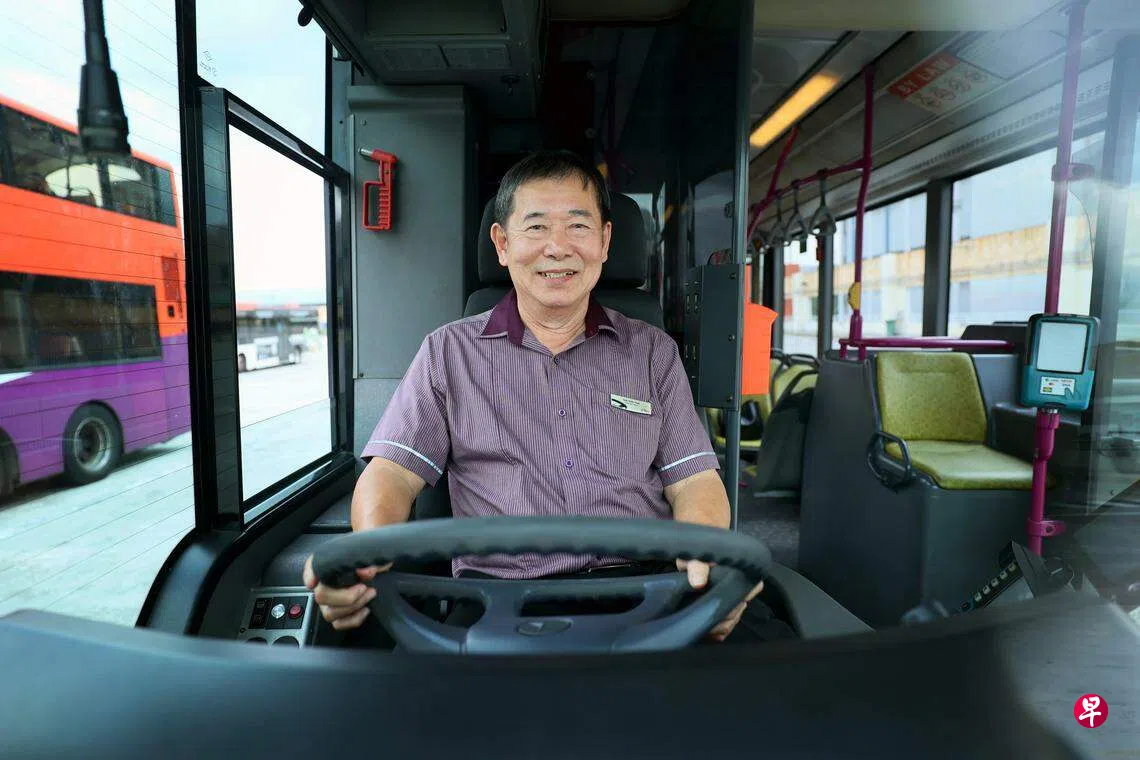 每次开工前,他都会检查车辆,再花15分钟在巴士上伸展手脚和腰部,活动筋骨。