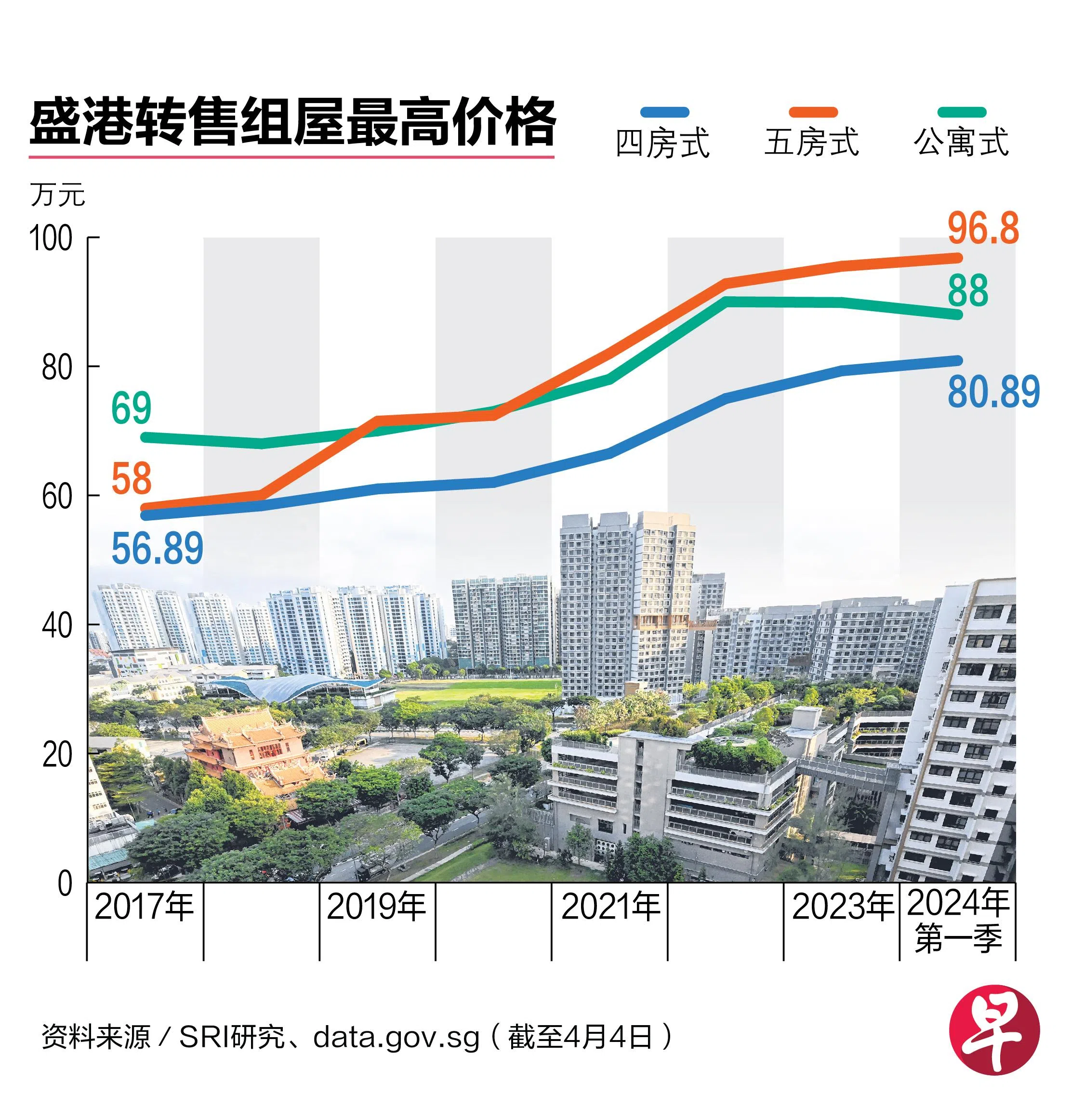 SRI研究与数据分析部主管莫汉(Mohan Sandrasegeran)指出,盛港的组屋转售价已逐渐逼近百万大关,特别是五房式等较大的户型。他举例,位于康埔桦通道(Compassvale Drive)第216A座的一个五房式单位,今年3月以96万8000元售出,显示了盛港地区房产价值上涨的迹象。这是迄今为止,盛港五房式单位的最高转售价格。