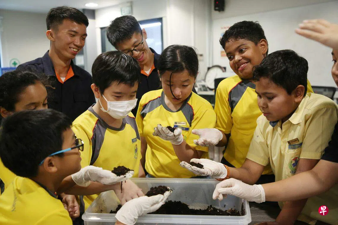 工教局自2017年为学生开设培养蠕虫的课程,园艺管理与设计班的学生林蔚康告诉记者,他们现在几乎每个月都会有一次工作坊,为学校、社区组织等机构传授培养蠕虫的技巧。