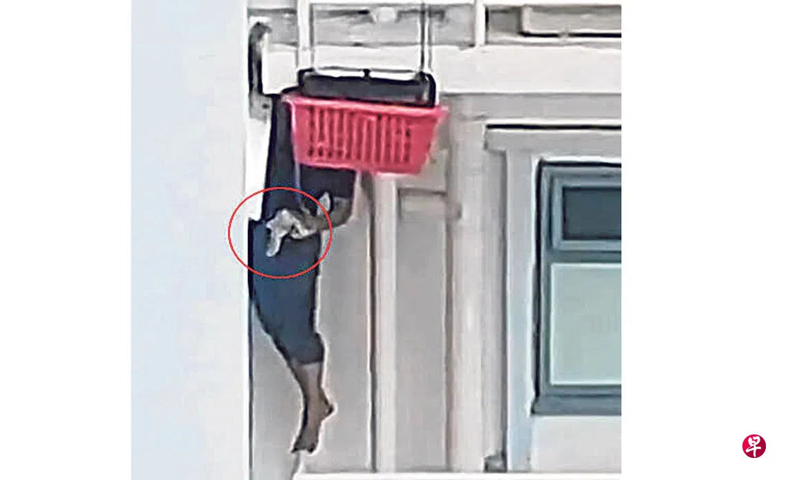 直到下午,有居民担心小猫咪坠楼,就合力救援。根据林女士提供的视频,有人从高处放下一个用绳子绑着的塑料篮,尝试救猫,但没能成功。
