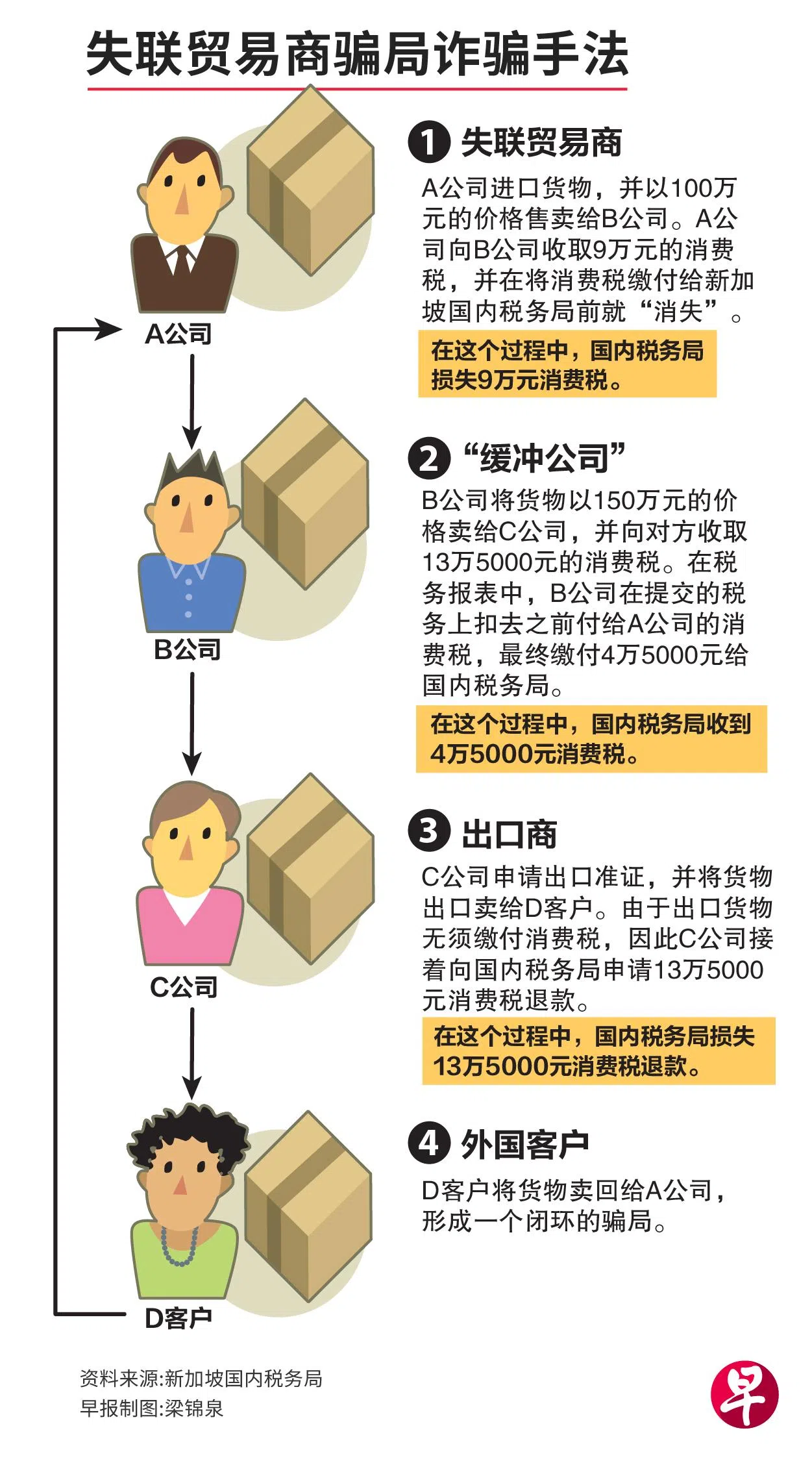 在此案中,税务局与出口商都有损失。税务局发出至少77万2118元的消费税回扣,若不是识破了骗局,当局发出的回扣可能达近800万元。