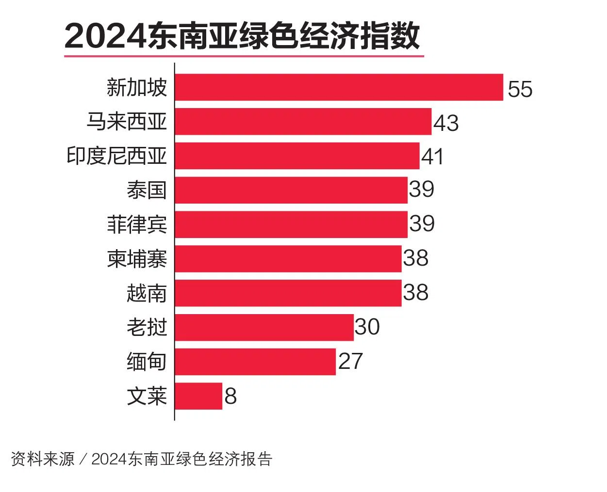 新加坡在首次公布的东南亚绿色经济指数排名中居冠。但报告也指出,东南亚各国目前仅完成实现2030减排目标所需绿色投资额的1.5%,未来发展压力和潜力皆巨大。