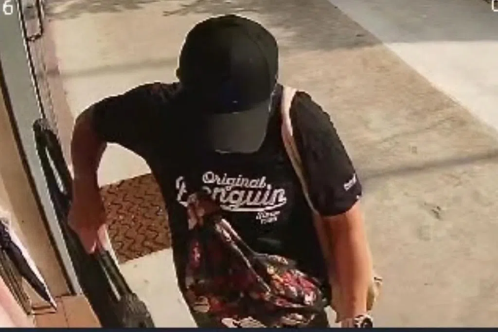 根据两间洗衣店提供的电眼画面,作案的人都头戴帽子、身穿黑衣和短裤,戴着白色口罩和穿着拖鞋,貌似同一人干案。