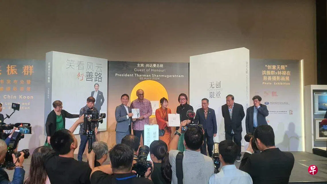 尚达曼总统与夫人珍一藤木,星期六(4月20日)出席在新加坡华族文化中心举行的《笑看风云行善路》新书发布会暨“创意无限”摄影画展开幕礼。