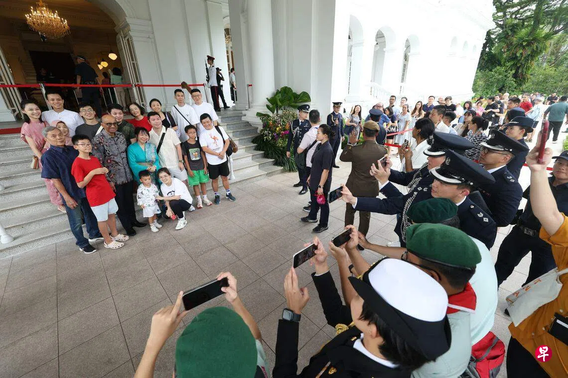 准新加坡管理大学学生阿里亚(Arya Eldon,21岁)则是和两个朋友路过总统府时,才发现是开放日,于是决定一同参观。“我们三人都是第一次来,很幸运能遇上开放日,等合影之后就会进入主楼参观,了解更多我国的文化。”
