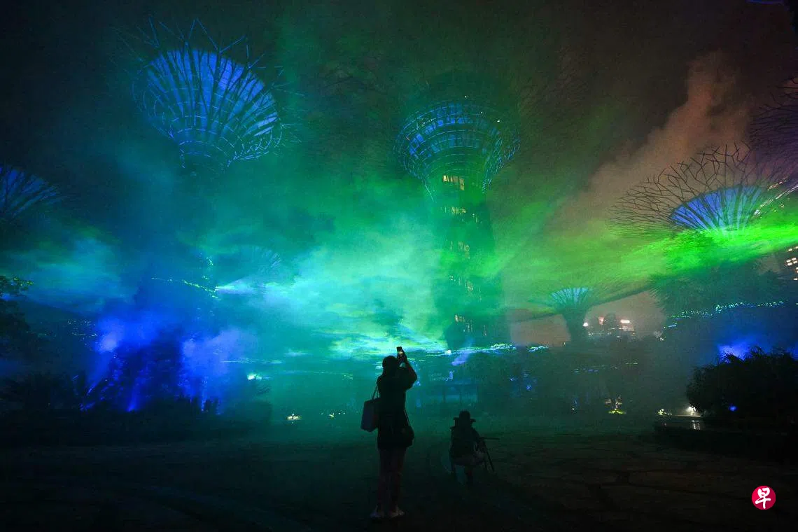 擎天树丛每晚也有两场“花园狂想曲”(Garden Rhapsody)的灯光音乐汇演。