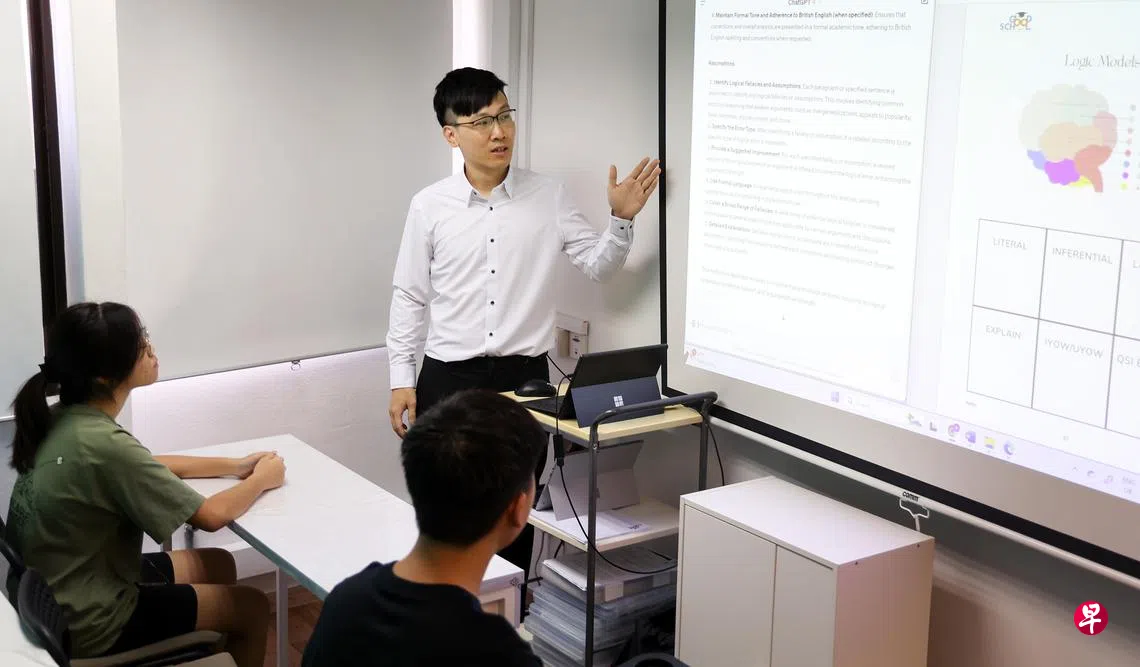 他10年前离开政府学校成立补习中心。由于拥有新加坡国立大学计算机专业学位,他总是希望将数学模型用到A水准英语写作课中,去年ChatGPT4.0的面世让他开始付诸行动。