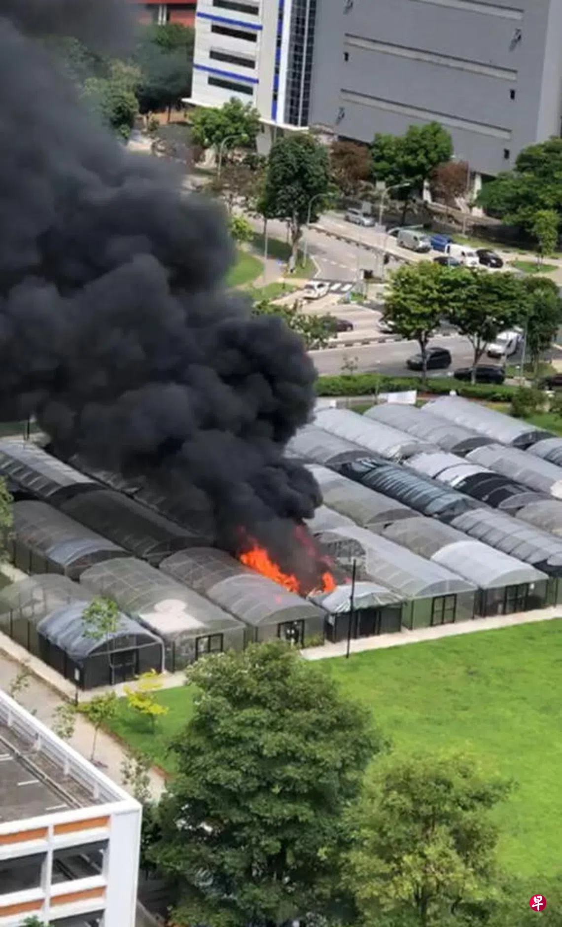 这起火患发生在星期六(4月27日)下午3时10分,地点是裕廊商业大道(Jurong Gateway Road)的裕乐园社区花园(Community Gardens@JPG),该处开拓56个花棚。