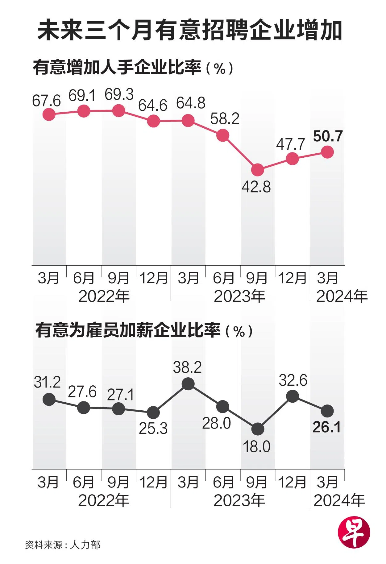 未来三个月有意增聘人手的本地企业,已从去年12月的47.7%,增加至今年3月的50.7%。但愿意为员工加薪的企业,同时期却从32.6%减少至26.1%,显示企业仍采取谨慎态度。
