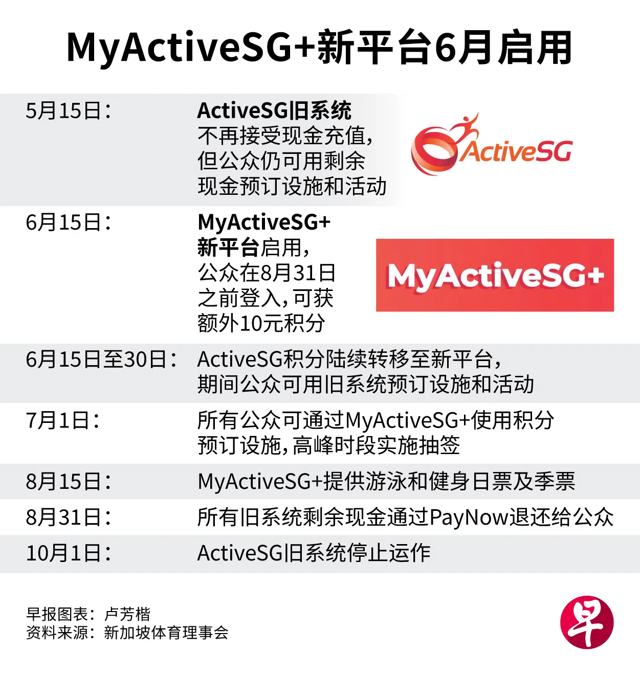 过渡期间需要协助的公众,可上网go.gov.sg/myactivesgplus-intro,或致电18003441177向ActiveSG查询。当局会动员约1000名职员和义工,在多个体育中心为公众现场讲解。