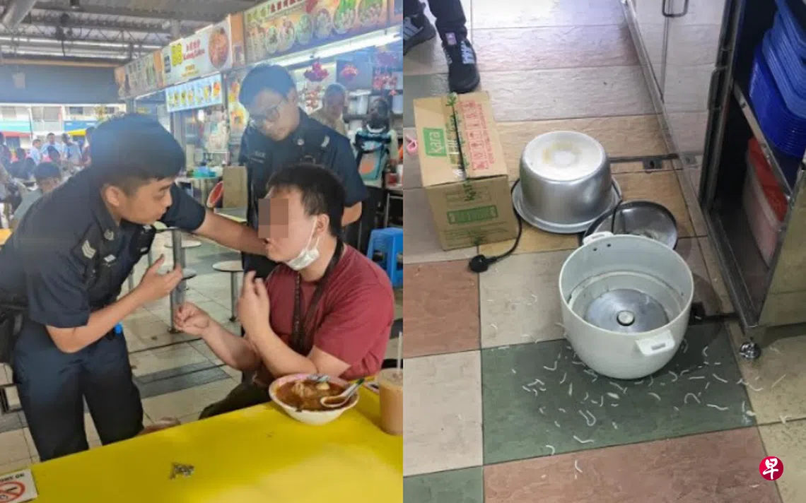 青年到鱼圆面摊买食物,却到叻沙摊拿汤匙和叉,被拒后不满,推翻收银台上的厨具,动手打人,女摊主报警。