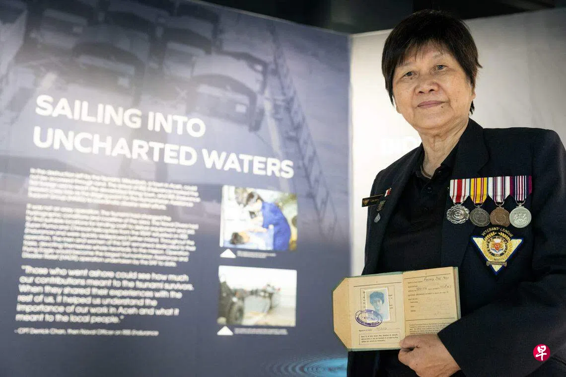 一张60年前的报名照,一本泛黄的工资簿,和一身荣誉勋章——76岁退伍军人冯意梅以独特方式纪念新加坡海军成立57周年。