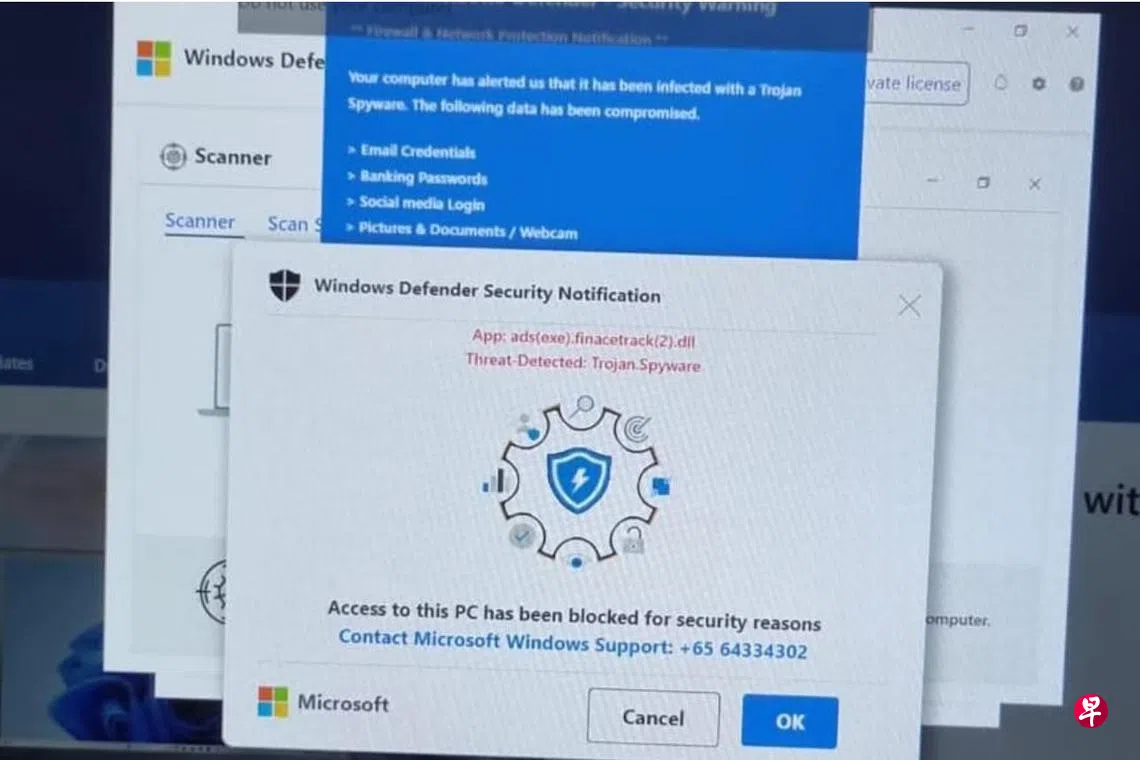 他的儿子阿尔伯特向《海峡时报》转述父亲的经历。他指父亲在4月17日接到一个来自“微软”的弹出警报,称他的电脑被植入木马程序,电脑随后也因“安全原因”导致使用权限被封锁,信息中要求他拨打警报内的热线号码。