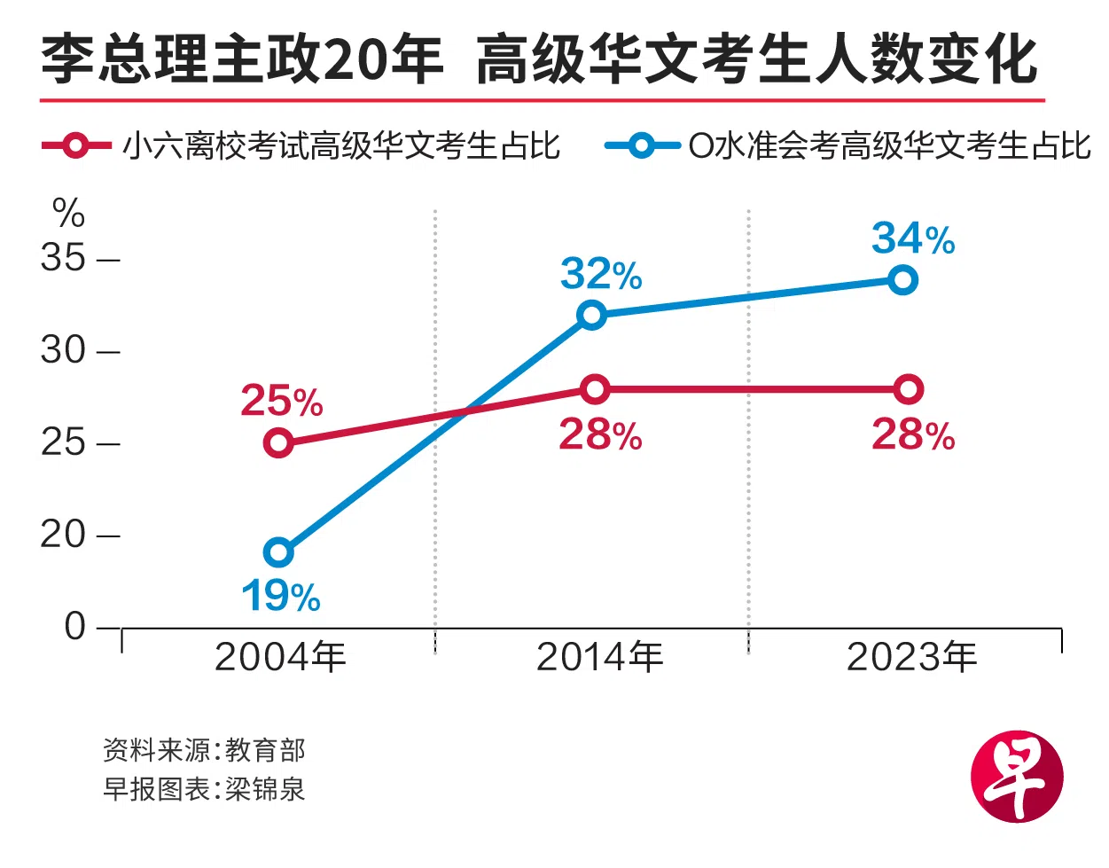 然而,教育部必须不断更新母语的教学法、课程内容和考试方式,以配合社会和环境的变迁。根据教育部提供的数据,在小六离校考试中报考高级华文的考生占比,从2004年的25%提高到2023年的28%,而同时期在中学O水准会考中报考高级华文的考生,则从19%增加至34%。